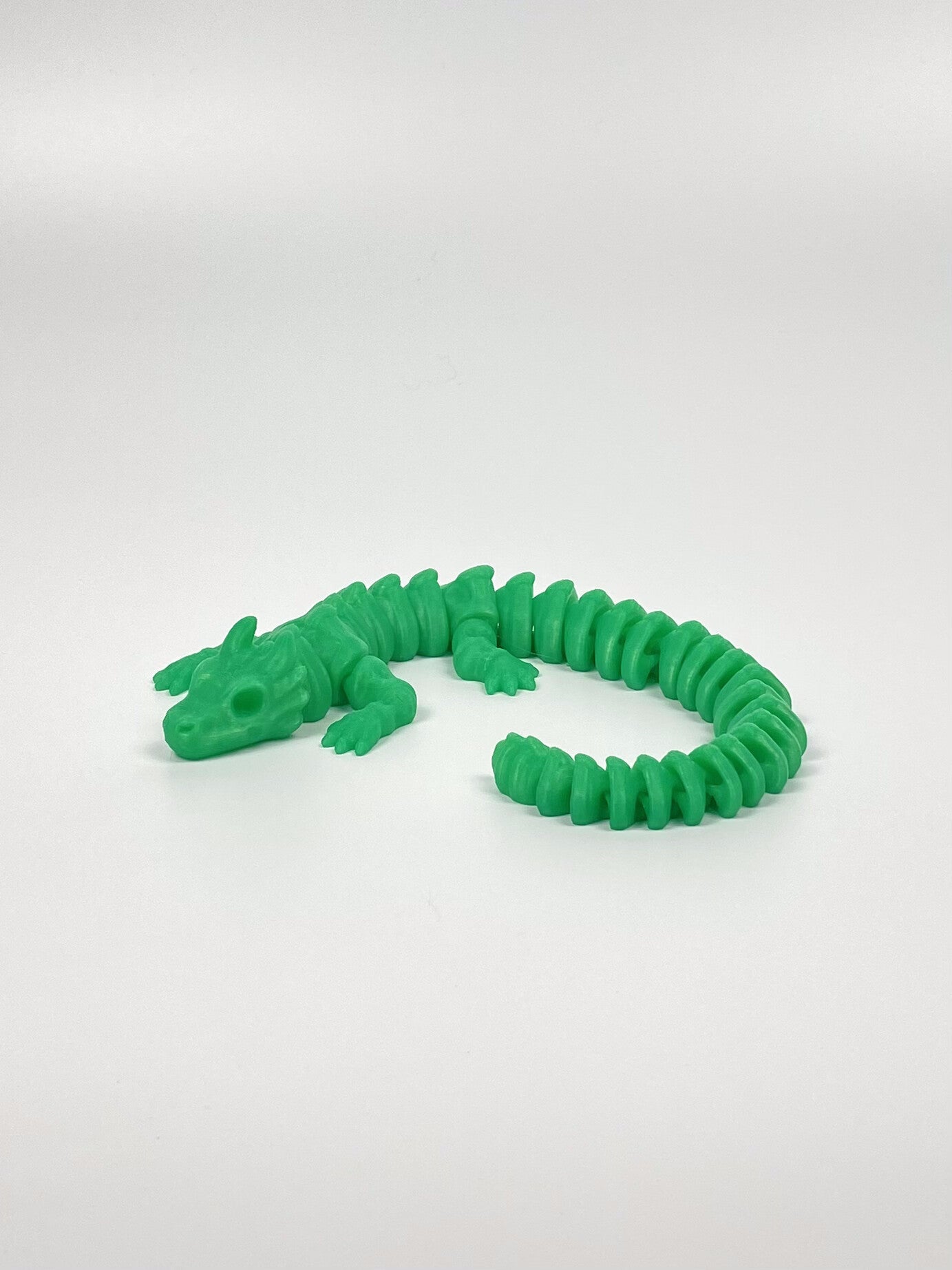 Deze draak verkleurd bij warmte van donker groen naar licht groen.