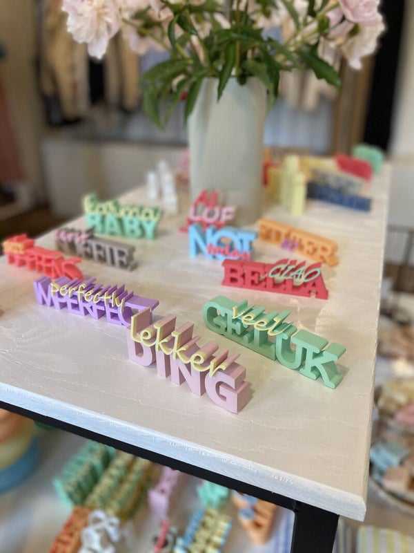 Deze 3D-geprinte tekst is voor wie z’n grenzen kent – en dat best mag laten zien. Een uitgesproken accessoire met een knipoog: gedurfd, grappig en perfect om nét even een statement te maken.