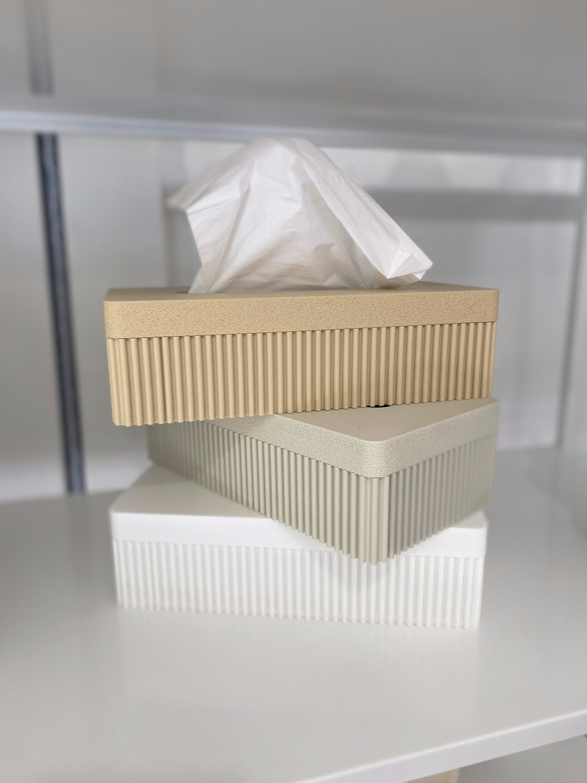 Add a stylish touch to your interior with this unique, 3D-printed tissue holder. With a sleek and contemporary design, this holder is a beautiful and practical addition to your living room, bathroom, kitchen, or workplace.