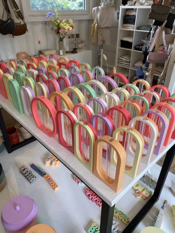 Breng een vleugje groen en design samen met Flora Tube – een set stijlvolle, 3D-geprinte vaasjes waarin reageerbuizen subtiel worden omgetoverd tot elegante bloemhouders. Perfect voor stekjes, enkele bloemen of droogbloemen, en ideaal voor wie houdt van een moderne, strakke uitstraling met een speelse twist.