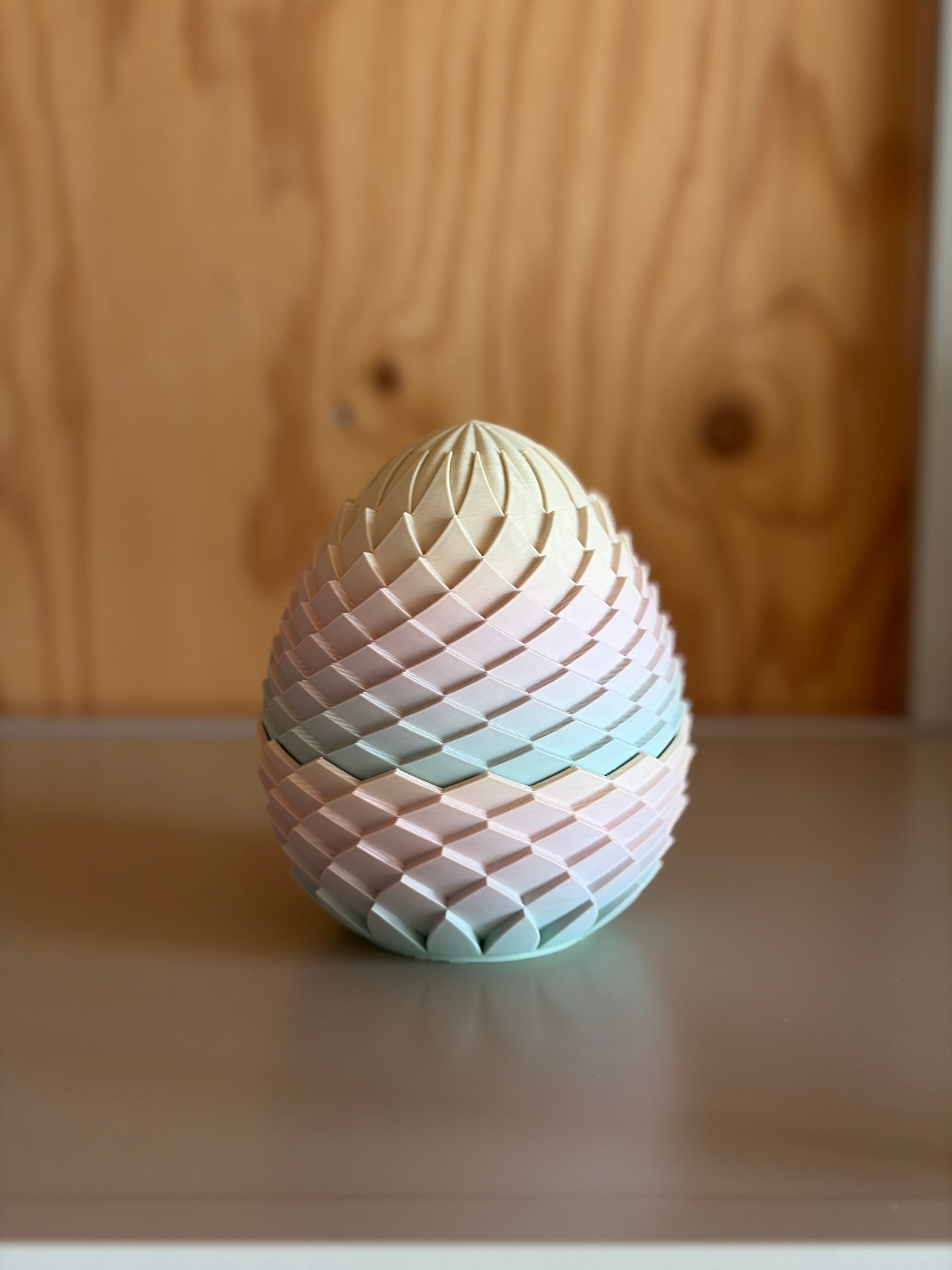 Available in both large and small sizes, these unique decorative pieces stand out thanks to their beautiful scale pattern. The egg consists of two parts and can be opened – perfect for storing small items or simply as a special design object.