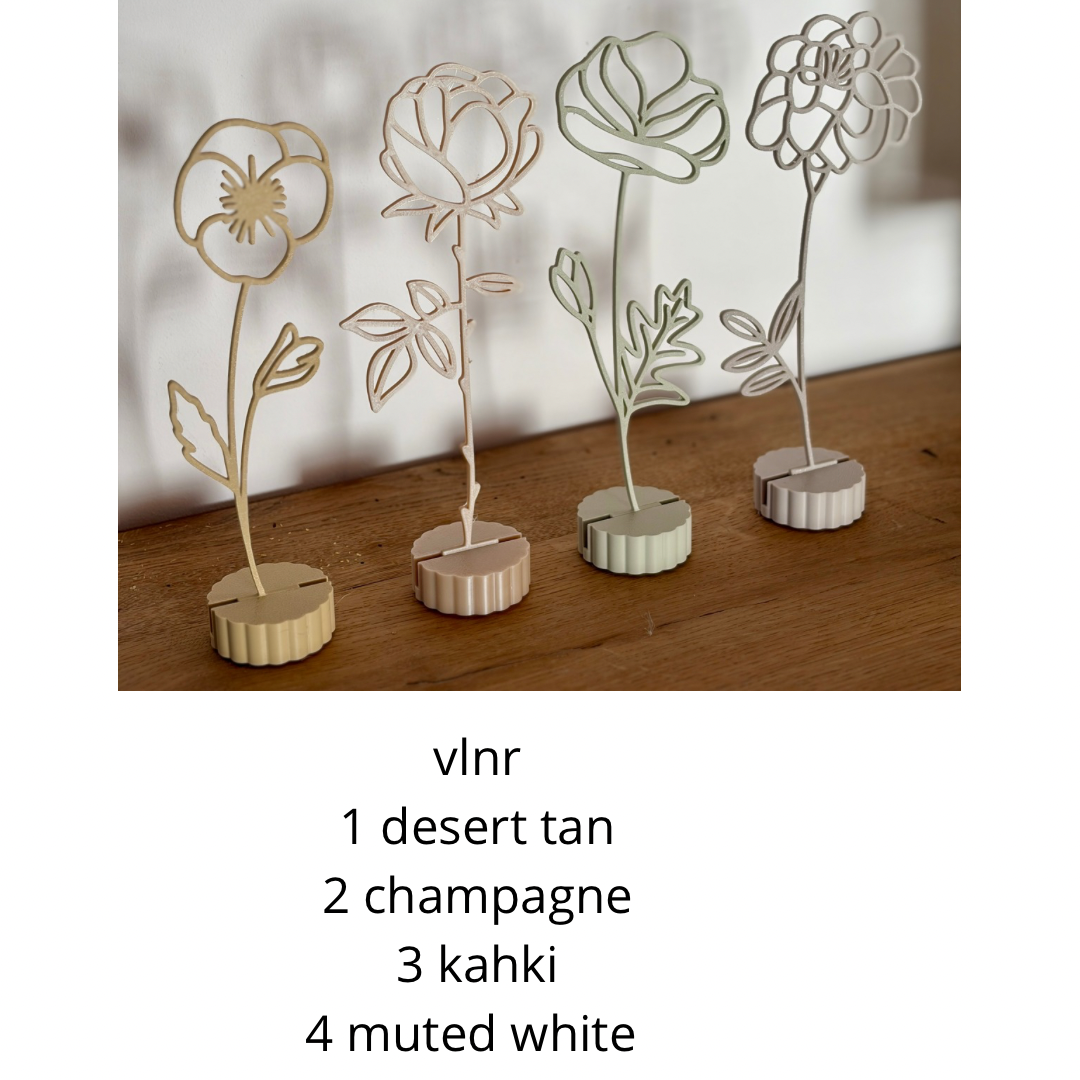 Onze geboortebloemen worden met zorg 3D-geprinten vormen een blijvend alternatief voor verse bloemen. Het minimalistische ontwerp zorgt voor een rustige uitstraling en past moeiteloos in elk interieur. Een persoonlijk decoratief object, prachtig als cadeau bij een geboorte, verjaardag of als tastbare herinnering aan een dierbaar moment.